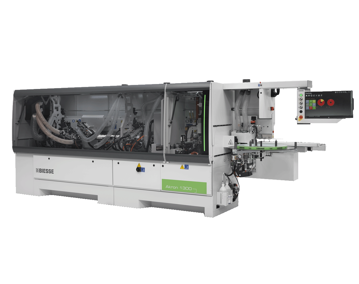 BORDATRICE BIESSE AKRON 1300: Passaggio pezzo 65 mm; testina colla ibrida per utilizzare colla EVA e PUR in granuli