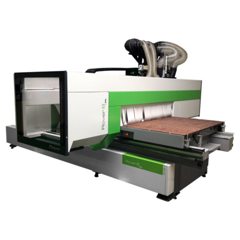 CNC BIESSE ROVER B 5 ASSI: Dimensione piano di lavoro 3600 x 1850 mm; Passaggio pezzo 200 mm; Carico/scarico tramite manipolare con ventose