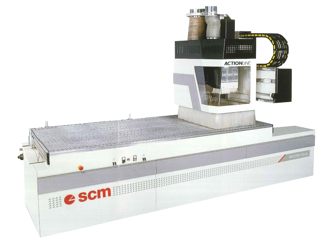 SCM RECORD 100 4 ASSI: Dimensione piano di lavoro 3000 x 1250 mm; Passaggio pezzo 250 mm; Carico/scarico tramite manipolatore con ventose