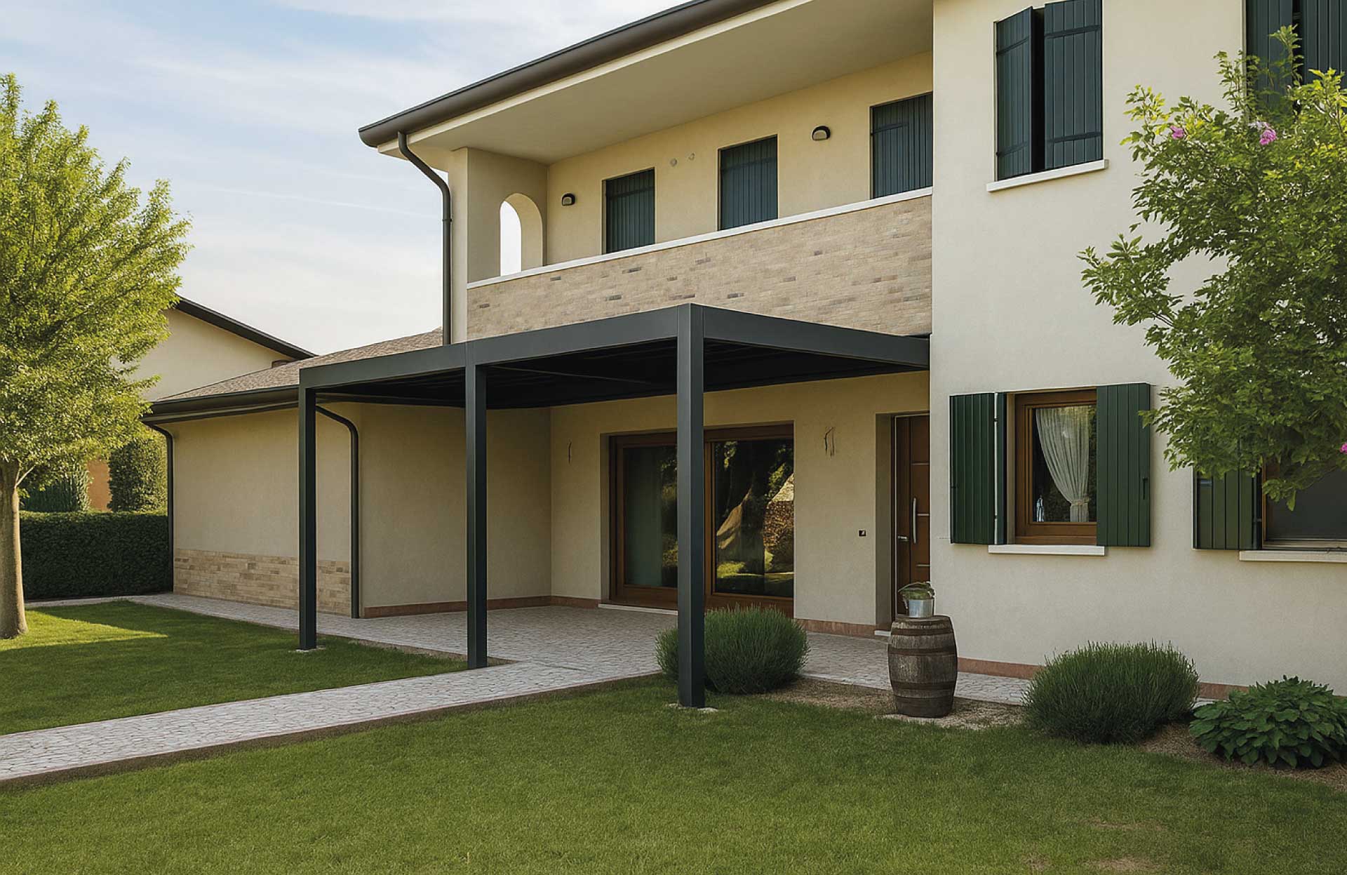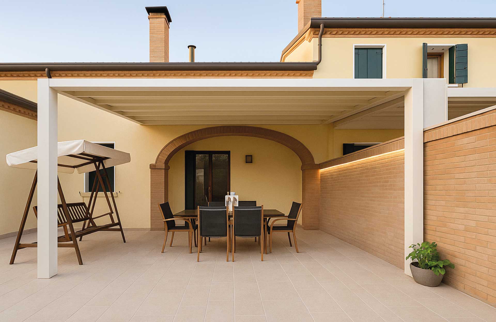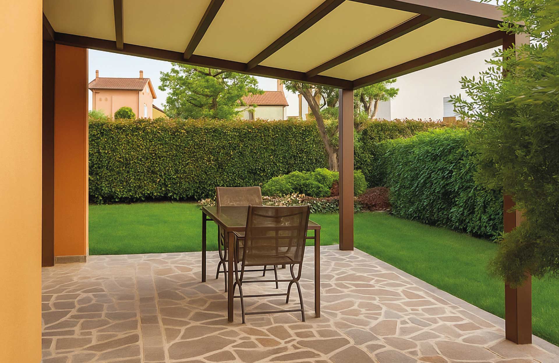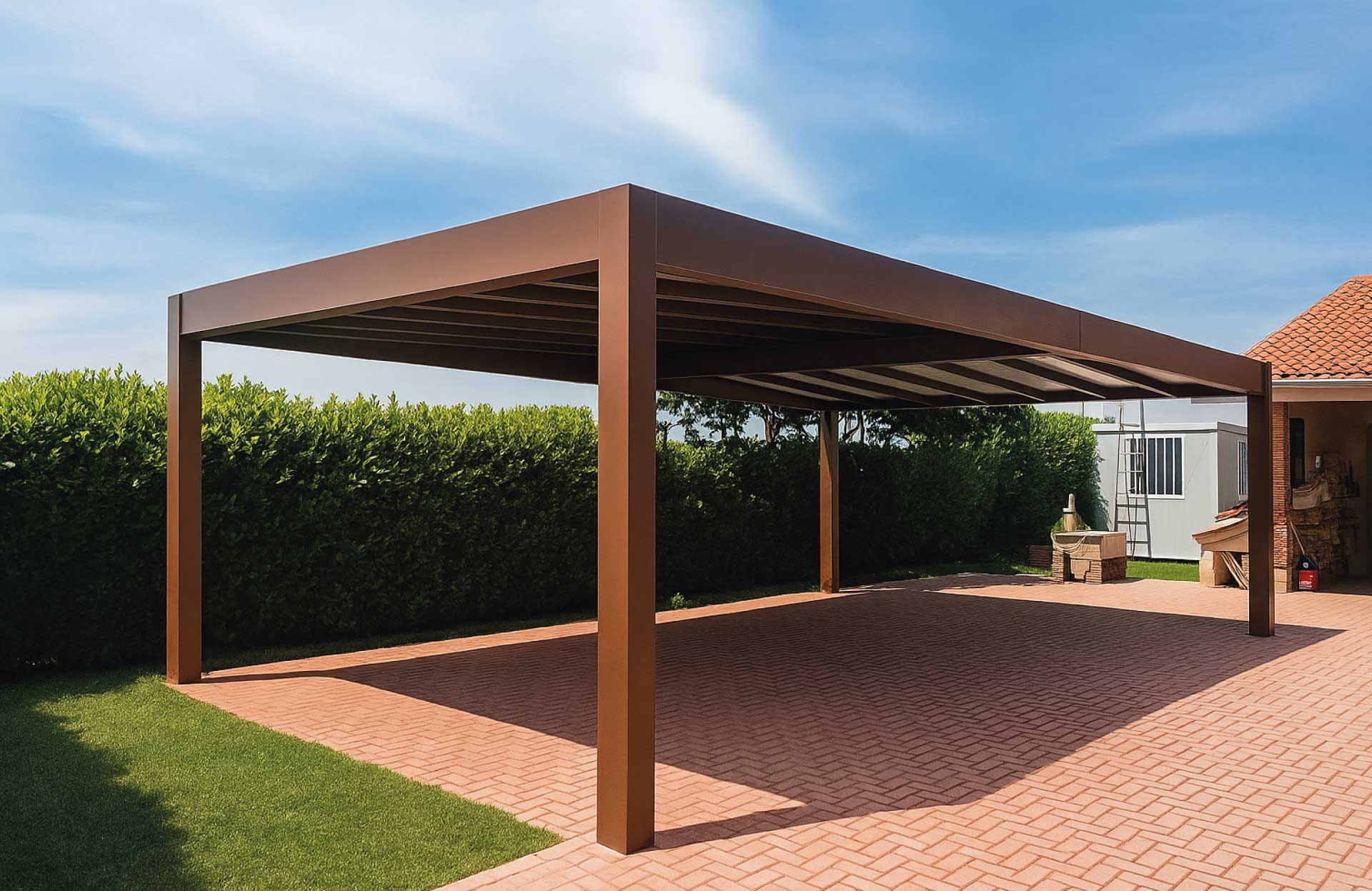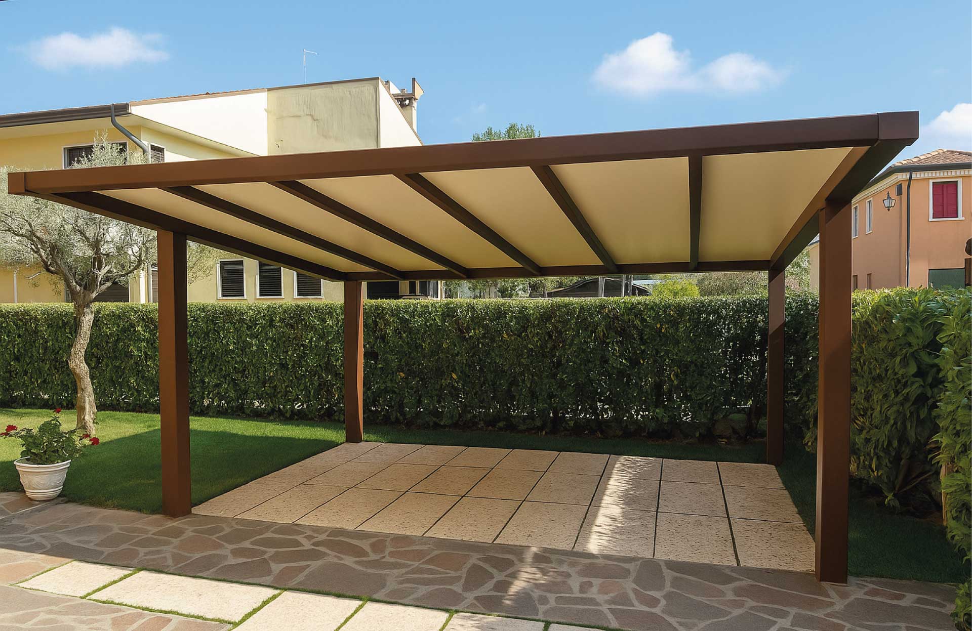 Le tettoie prodotte dal Gruppo GB consentono di creare spazi all’aperto in grado di assicurare il massimo confort grazie all’efficace protezione dal sole e dalle intemperie.