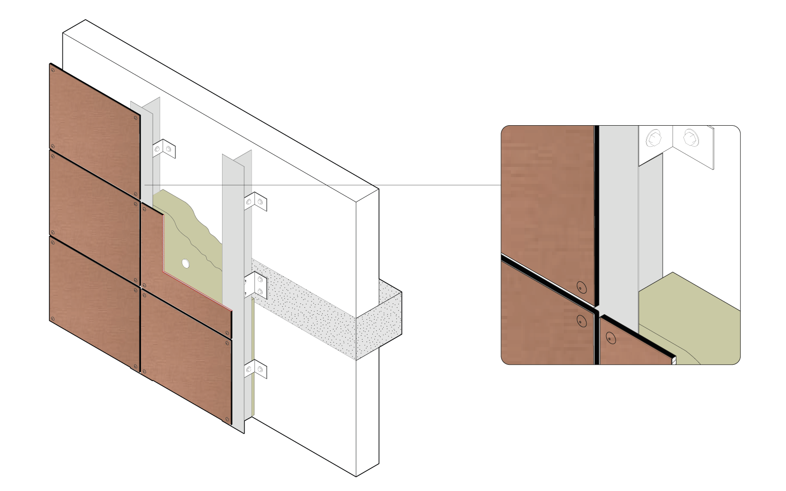 Fibrocement panels are mass-coloured to ensure colour uniformity of the surfaces, for façades with a monolithic and precise appearance. Fibrocement can be transformed into any size or shape. Thanks to our machining centres, it can be milled or perforated by drilling holes of any size, creating plays of light and shadow and textured surfaces.